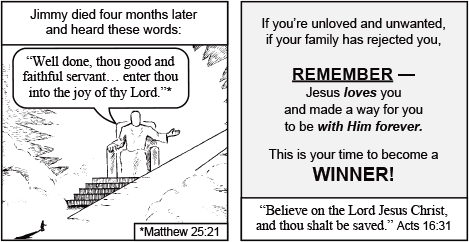 Description: Rejected by his family, unemployed and with no one to turn to, Jimmy was ready for suicide. But then he met the One who truly loves him.